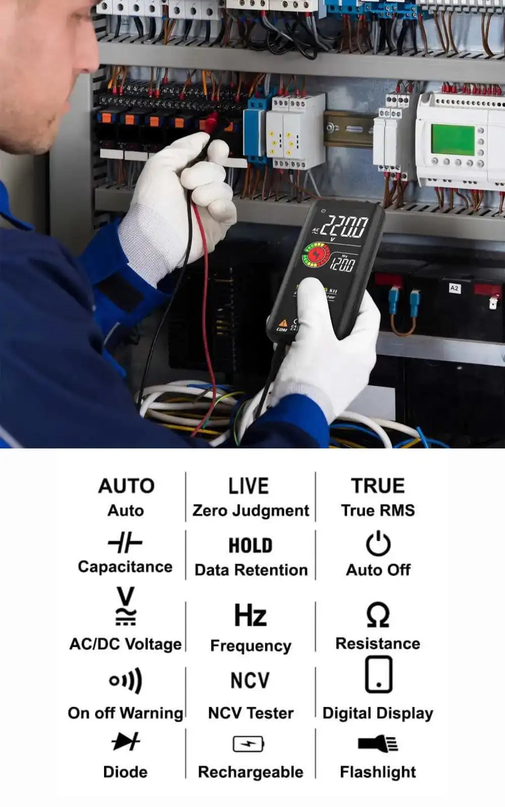 Ja, das Digitales Smart-Multimeter verfügt über einen eingebauten wiederaufladbaren Lithium-Ionen-Akku, so dass Sie sich nicht um den Batteriewechsel kümmern müssen.